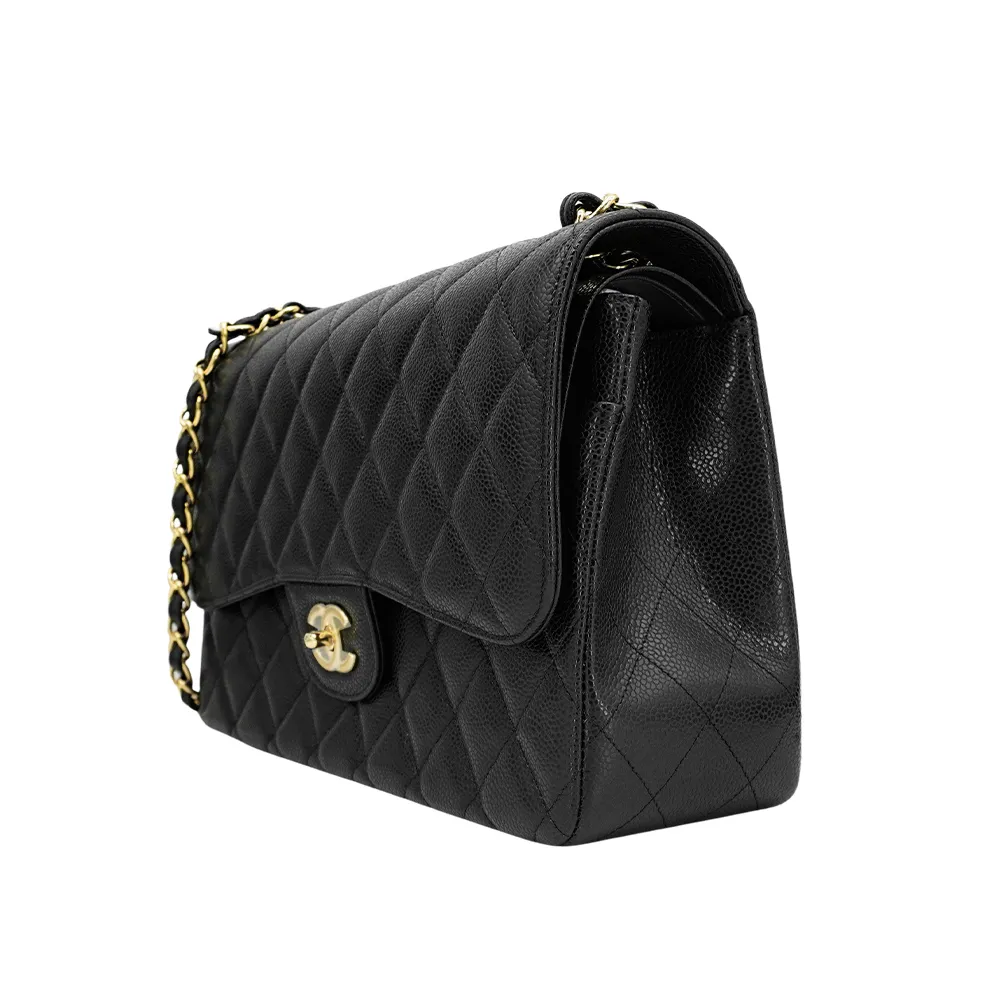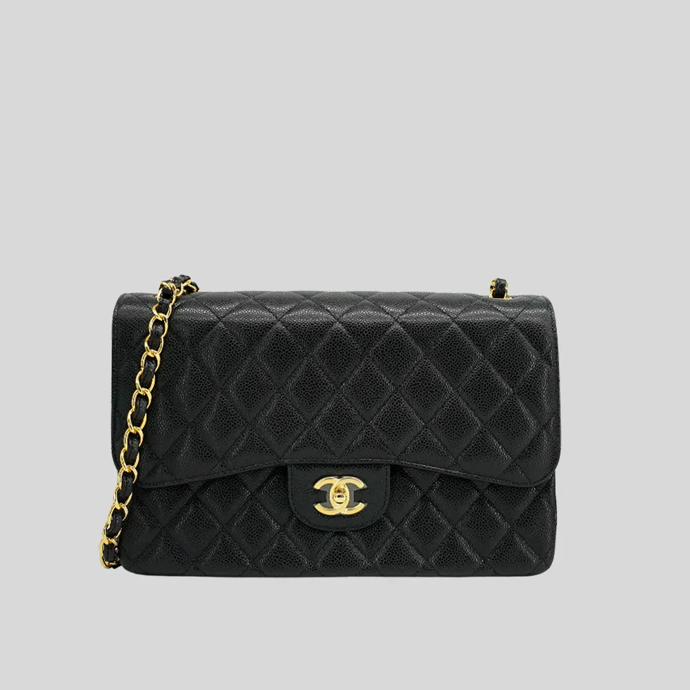 Chanel Jumbo 金雙C 粒紋牛皮斜背包(A58600-黑)