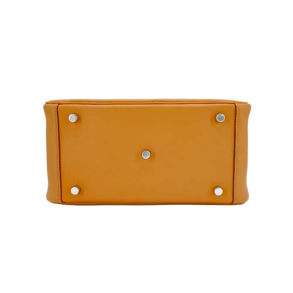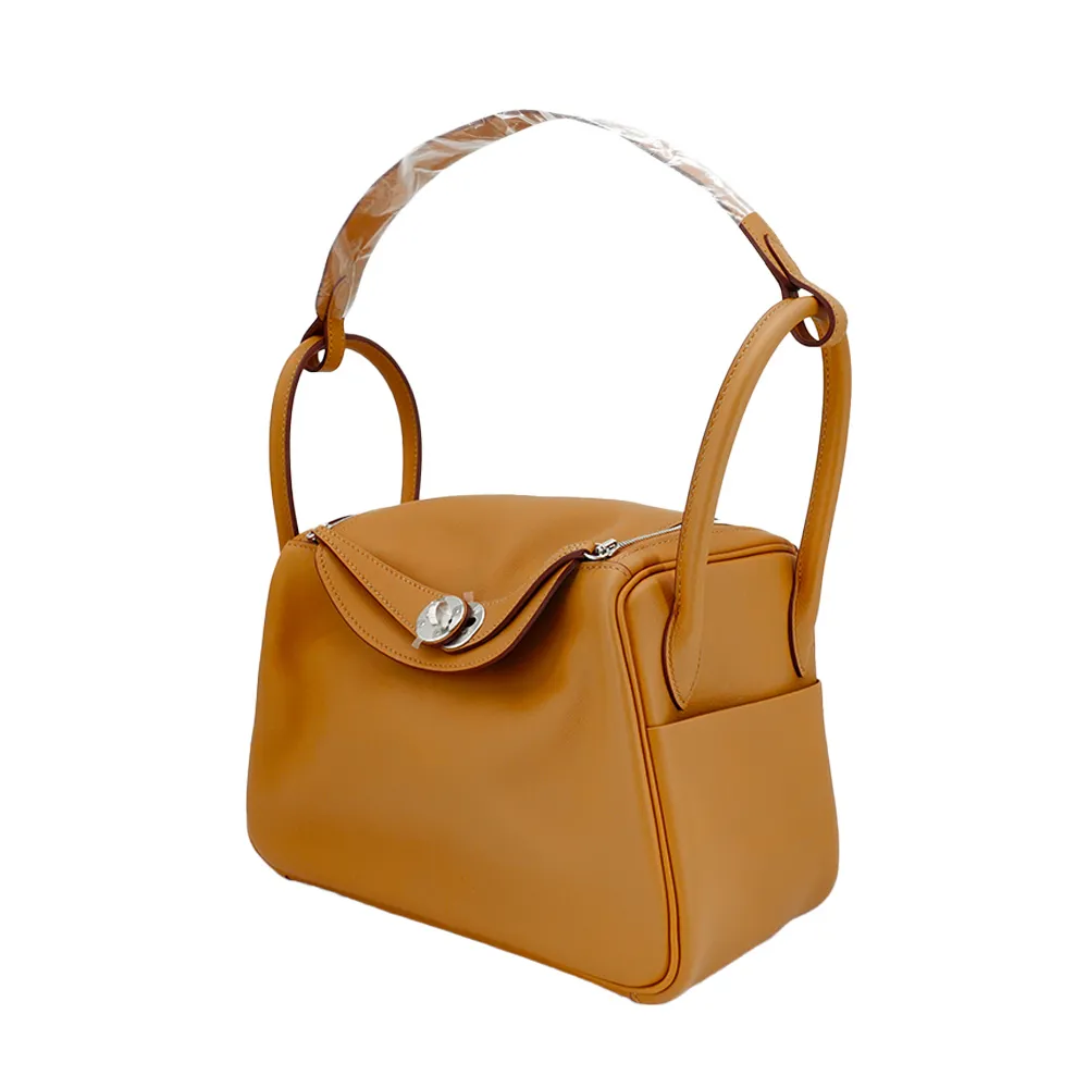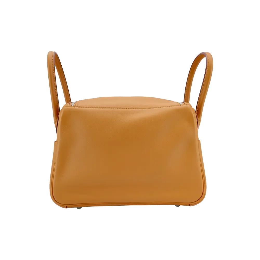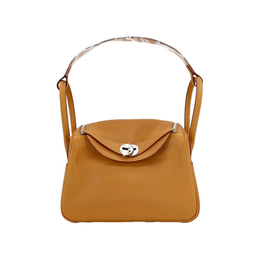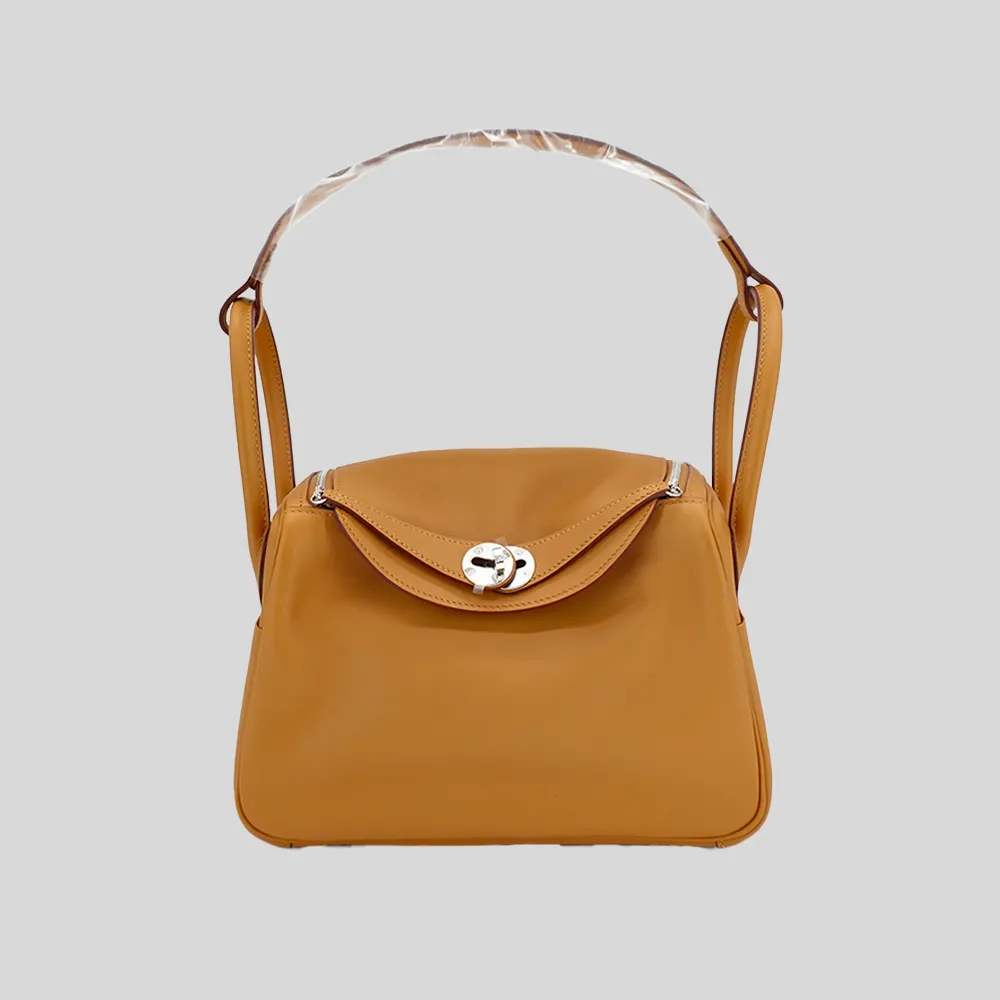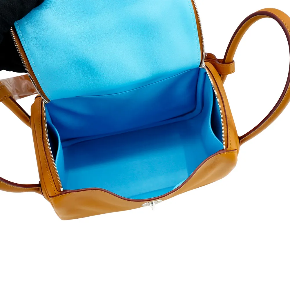 Hermes Lindy 26 牛皮銀釦拚色手提/肩背兩用包(芝麻/藍)