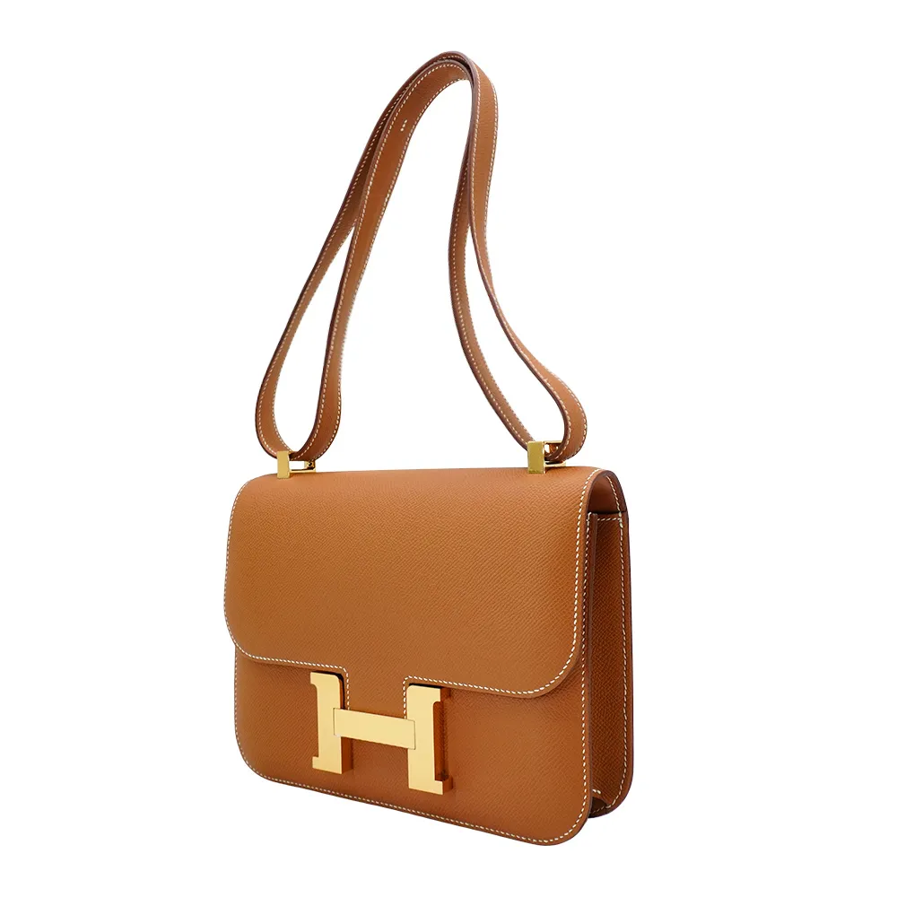 Hermes 二代 Constance 24 Epsom牛皮金釦肩背/斜背(Gold棕)