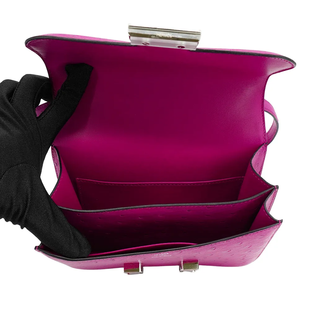 Hermes Constance Mini 鴕鳥皮銀釦斜背包(L3玫瑰紫)
