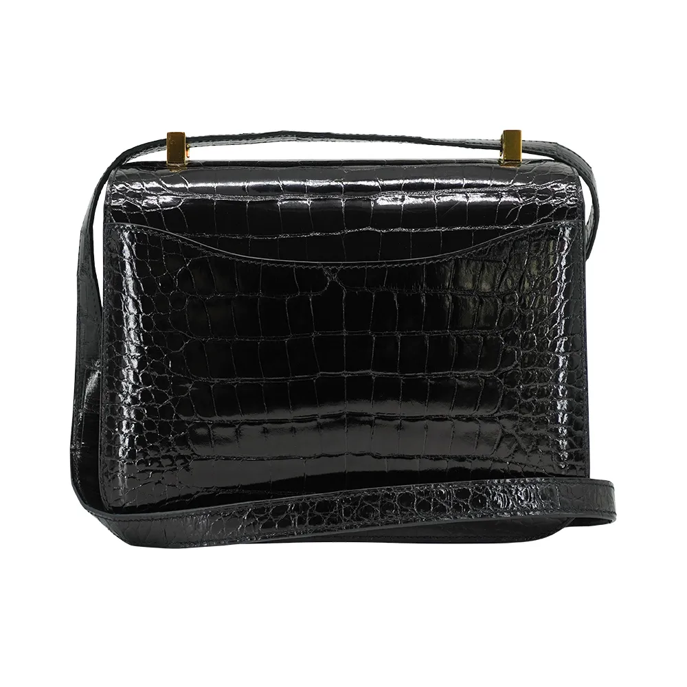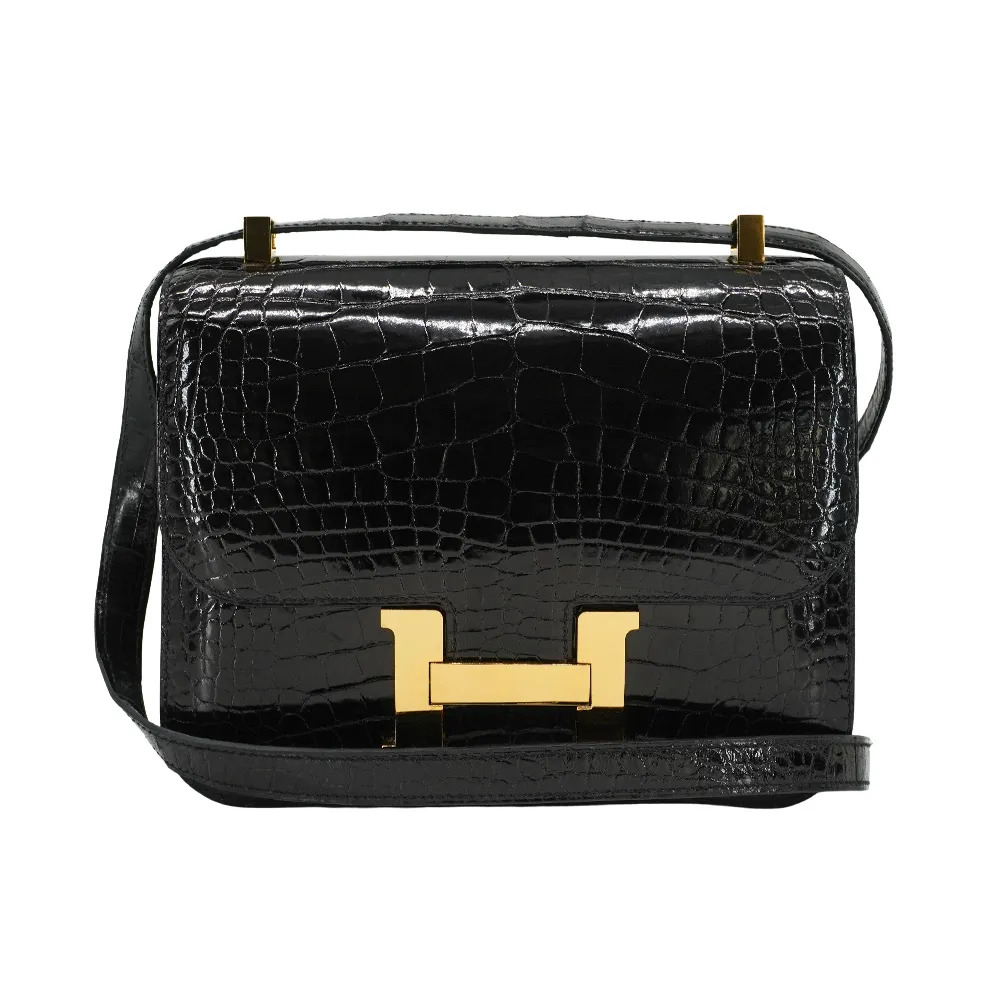 Hermes Constance 24 亮面鱷金釦肩背/斜背包(C刻/黑)